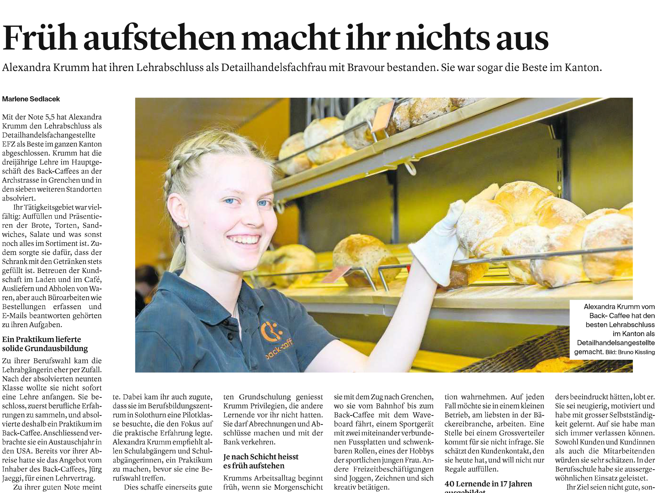 Mit der Note 5,5 hat Alexandra Krumm den Lehrabschluss als Detailhandelsfachangestellte EFZ als Beste im ganzen Kanton abgeschlossen. Krumm hat...